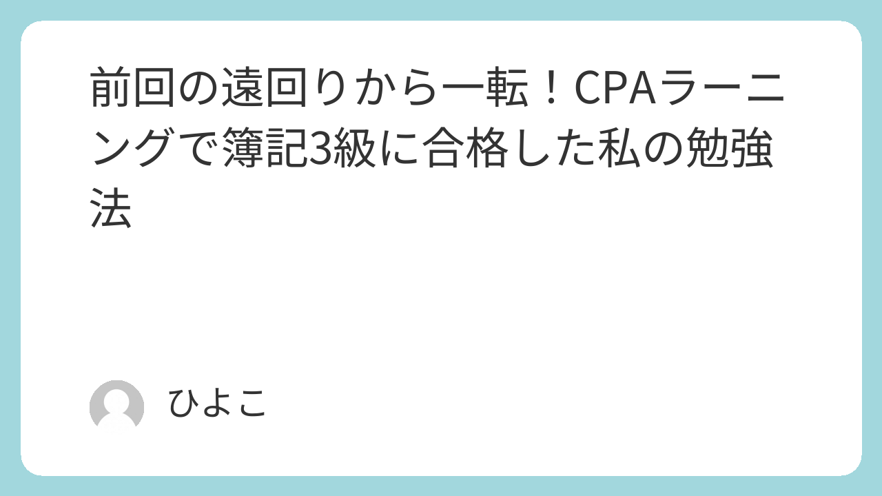 - 模試で本番慣れ:CPAの教科書模試3回分、ネット模試を3回分は必ずやる。(91点取れた自信が本番で効きました)