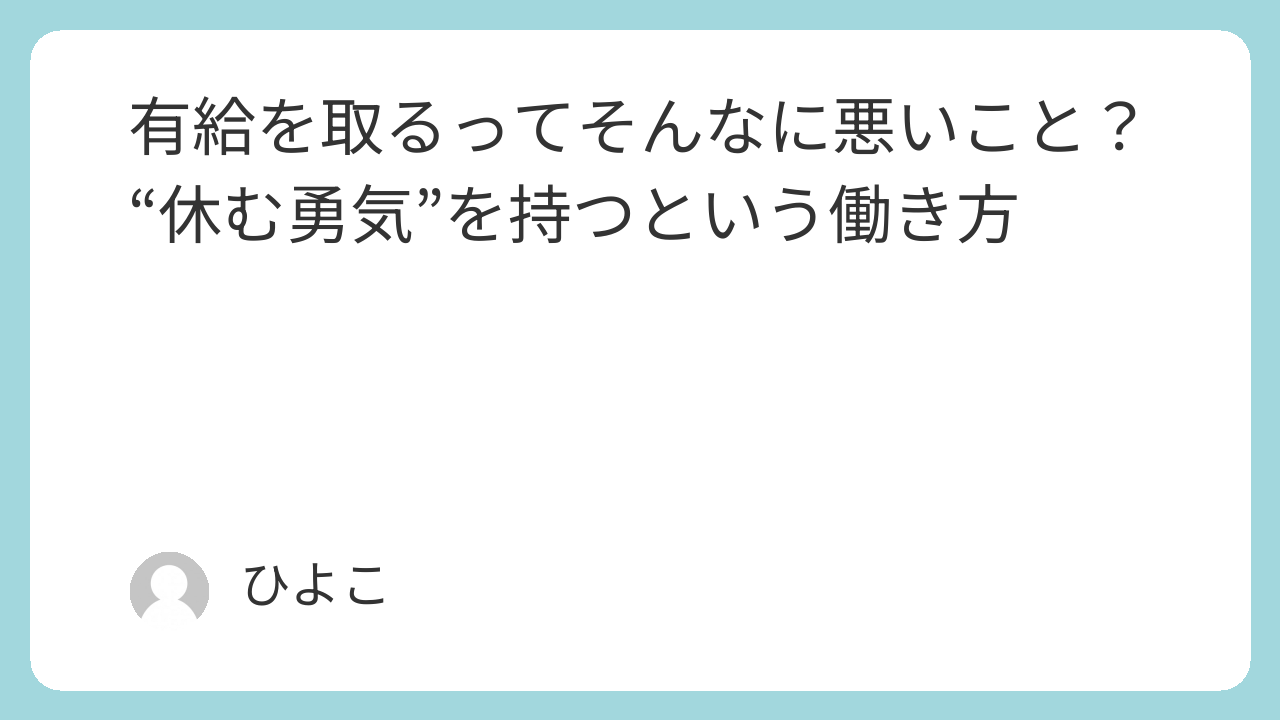 有給を取るってそんなに悪いこと?“休む勇気”を持つという働き方